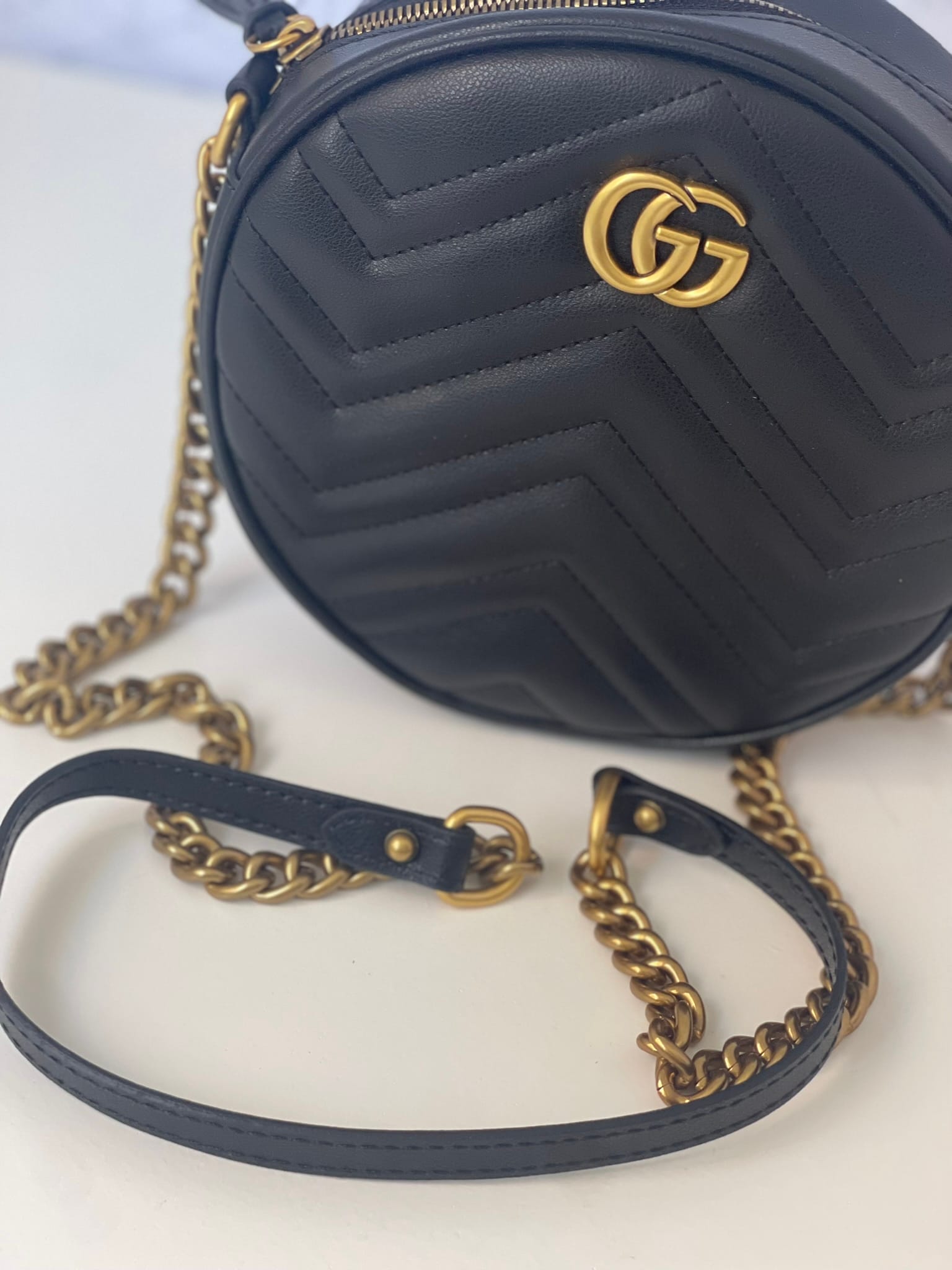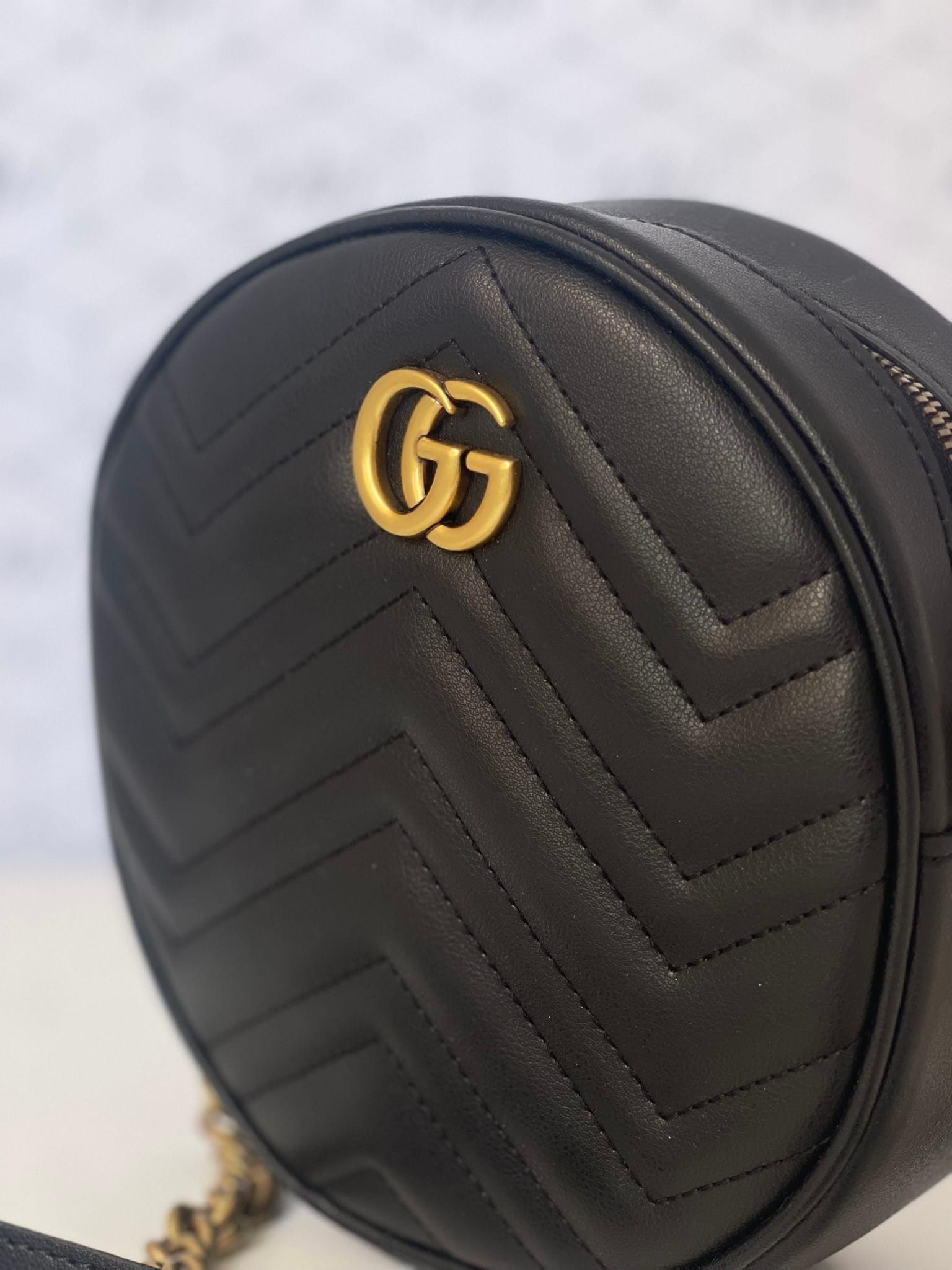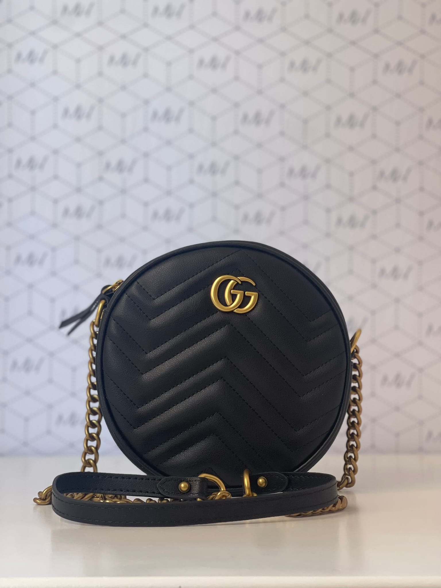 Bolsa Gucci Marmont Redonda preta GG pronta-entrega