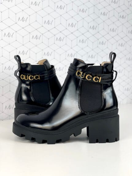 Bota 37 BR Ankle Boot Gucci Logo salto médio Logo
