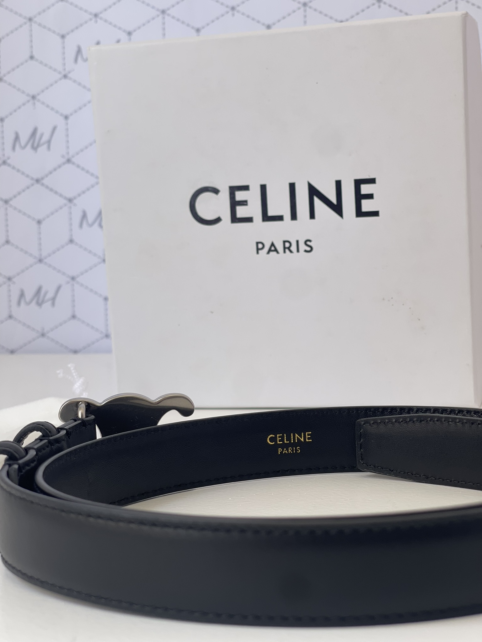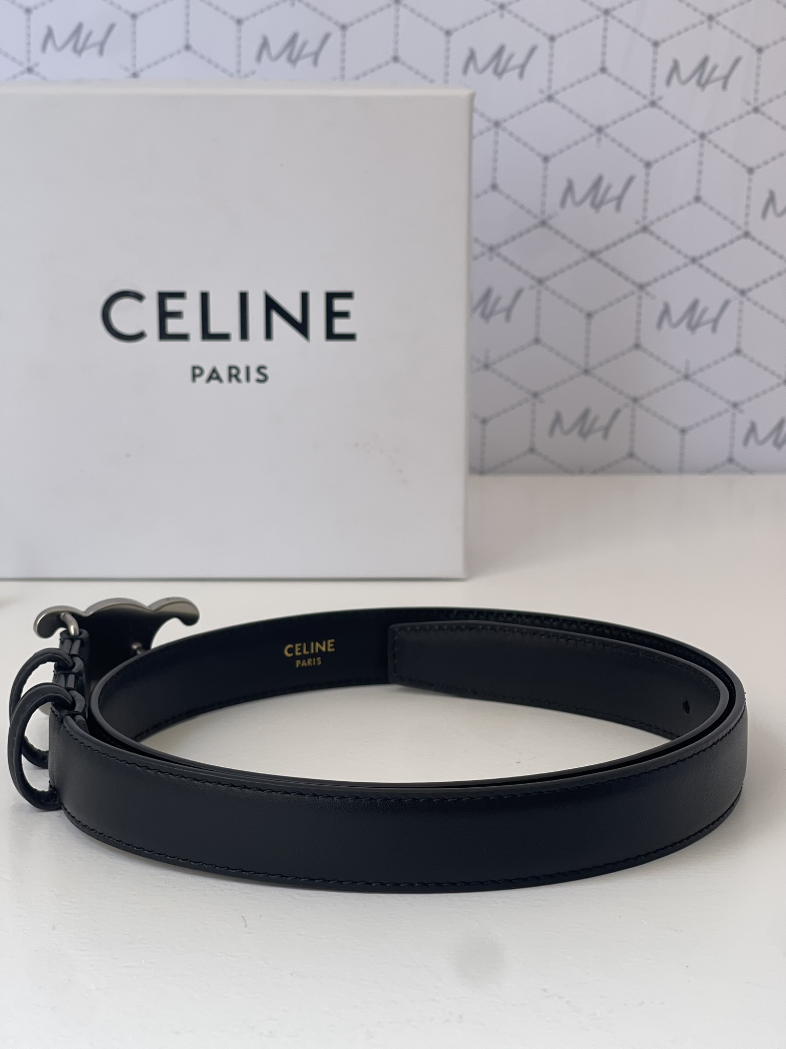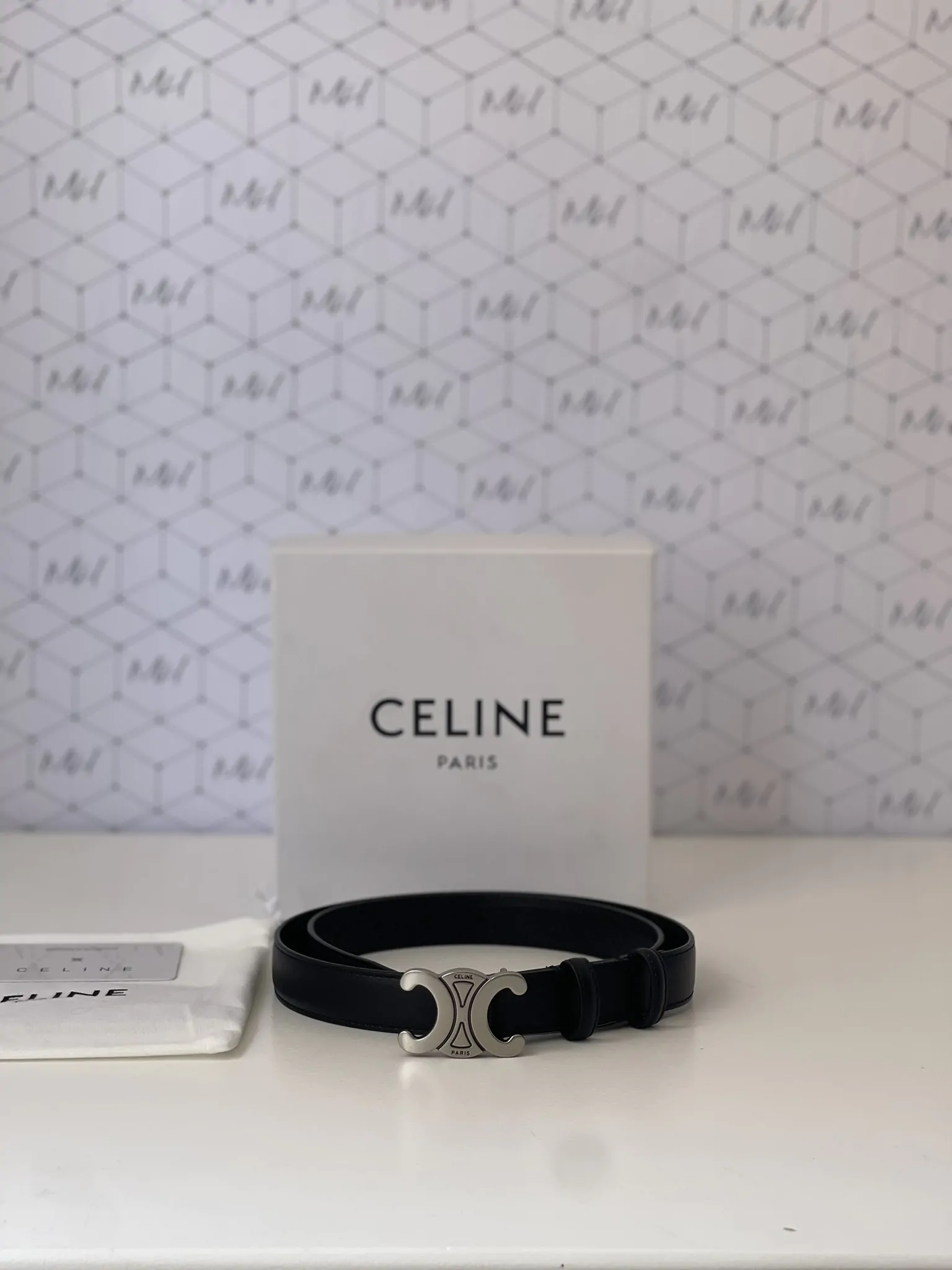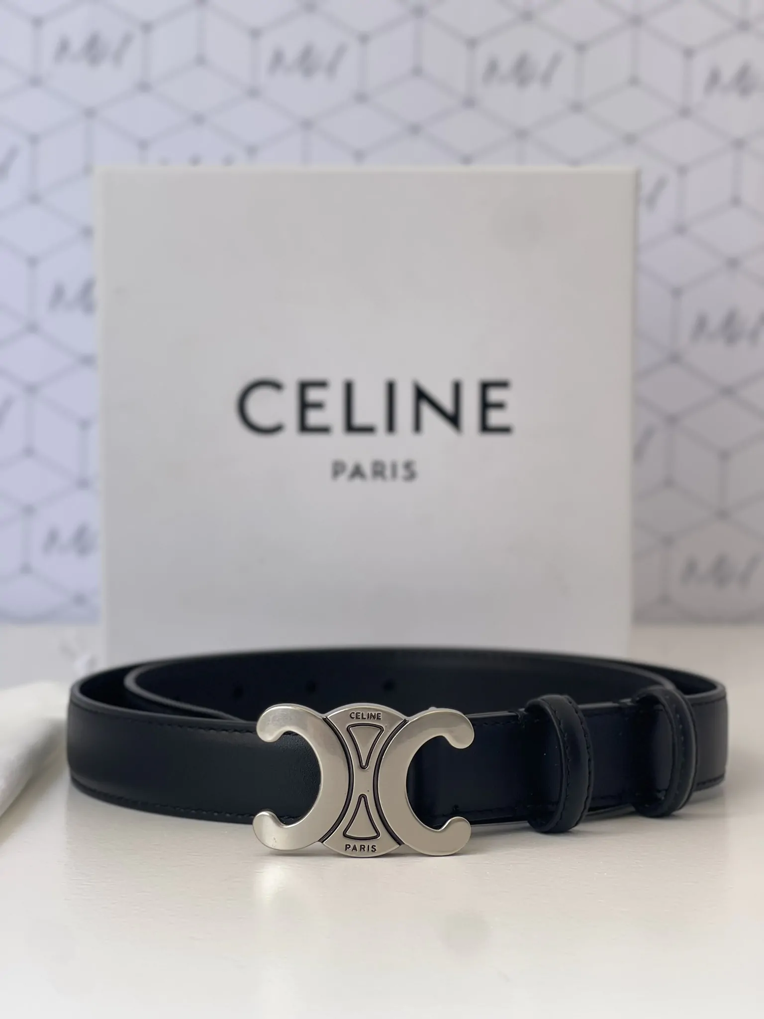 Cinto Celine Triomphe preto com prata