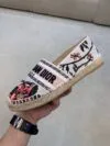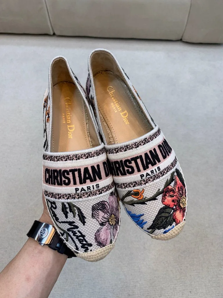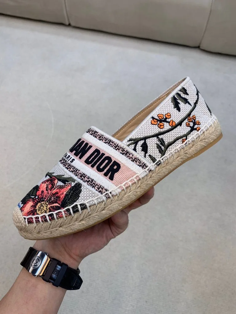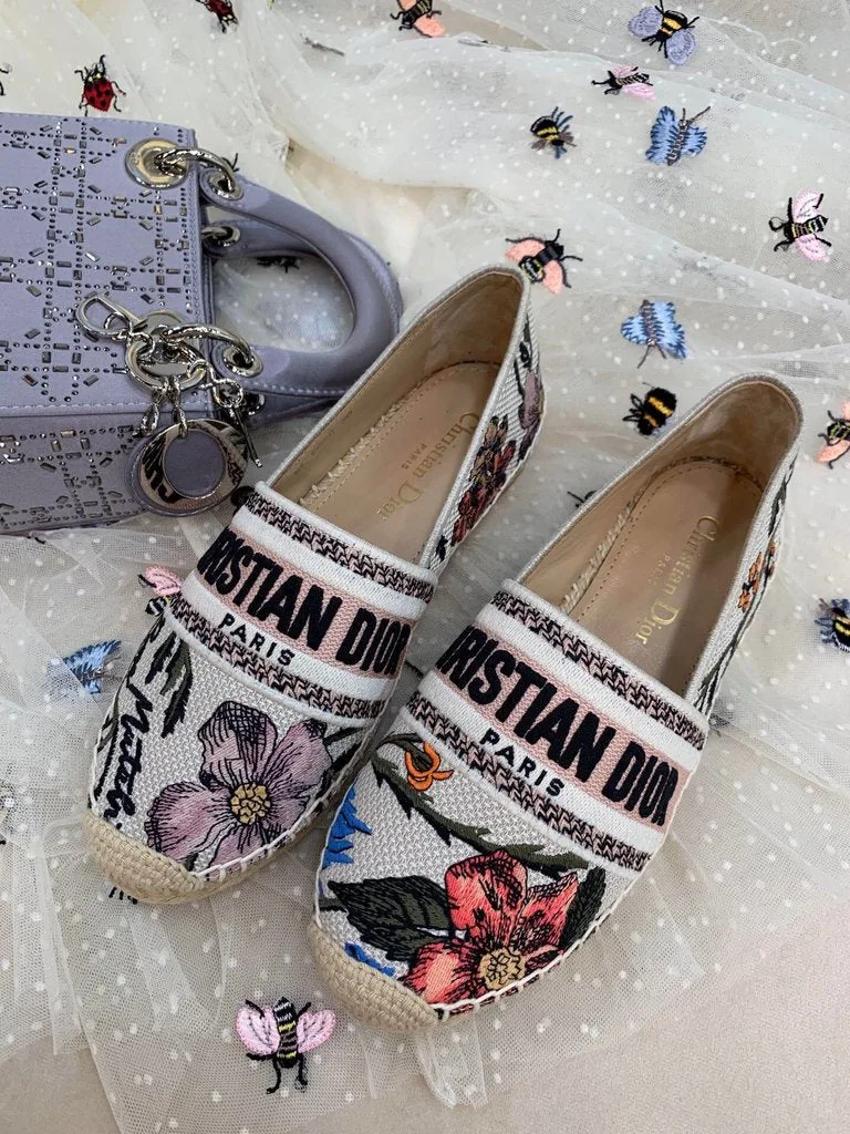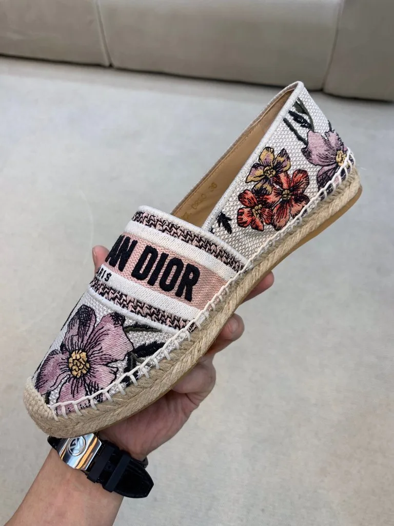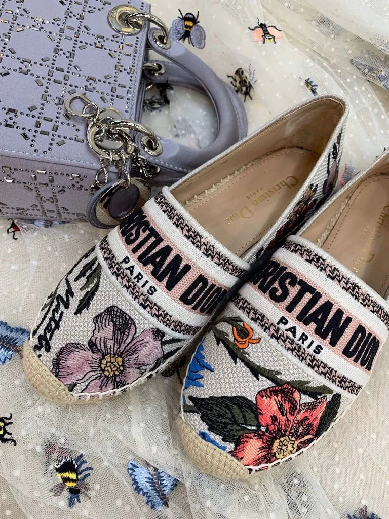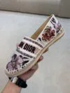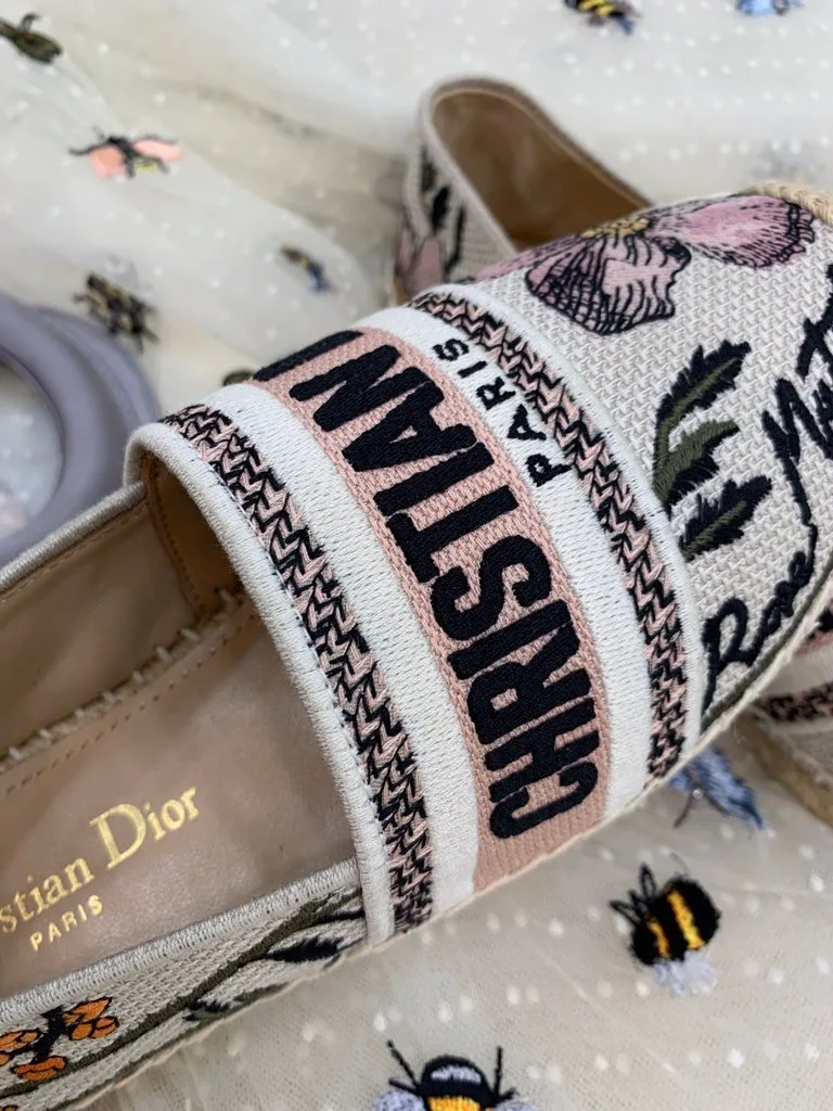 A alpargata Dior Granville tem uma sensação relaxante. Retratando muitos elementos de design clássico da casa, a parte superior do sapato é totalmente bordada com a assinatura ‘Christian Dior’ e a estampa Rosa Mutabilis. A sola é inteiramente artesanal, usando cordas artesanais e técnicas tradicionais de artesanato, tornando-a um item básico de verão.