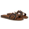 Rasteira Hermès Oran H denim e caramelo