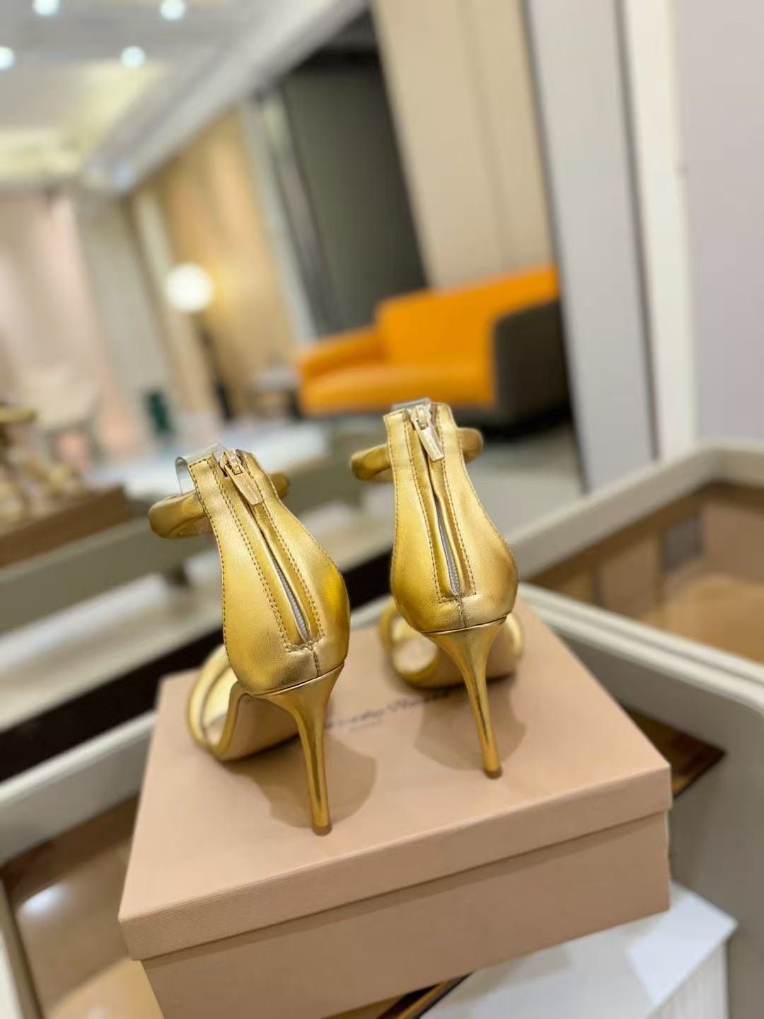 Sandália YSL Opium Saint Laurent salto dourado - Loja Must Have